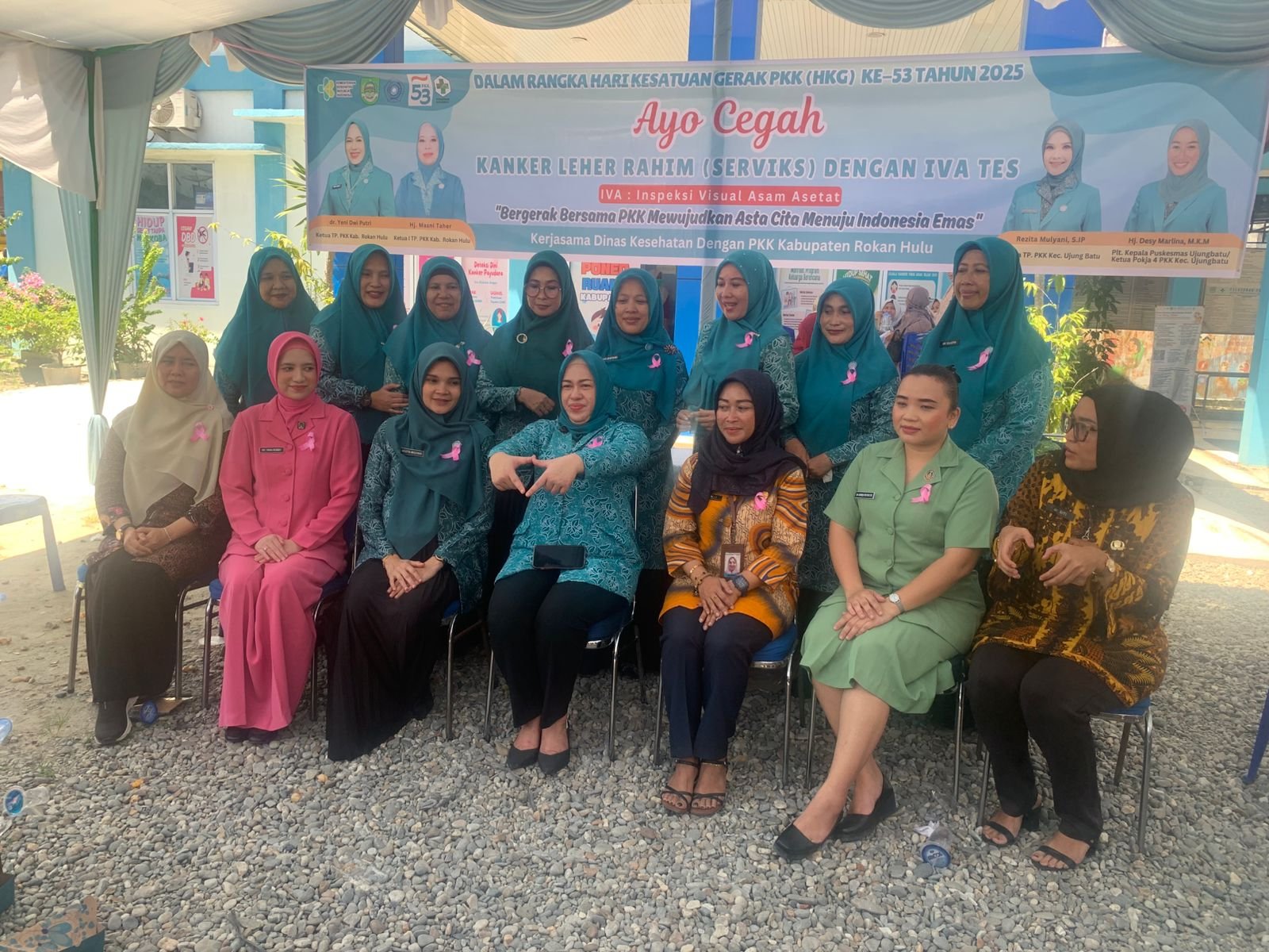 Hadir dalam kegiatan, Plt. Kapus Ujung batu Hj. Desy Marlina, M.Km, Camat Ujung batu H. Rio Pratama, S.STP, M.Si, Ketua TP. PKK Ujung Batu Rezita Mulyani Rio, S.IP, Kapolsek Rambah Samo, kadis DPPKB Bambang Triono, Plt. Kadis Kesehatan, Pengurus TP PKK kabupaten Rokan Hulu serta ibu ibu peserta IVA tes.
