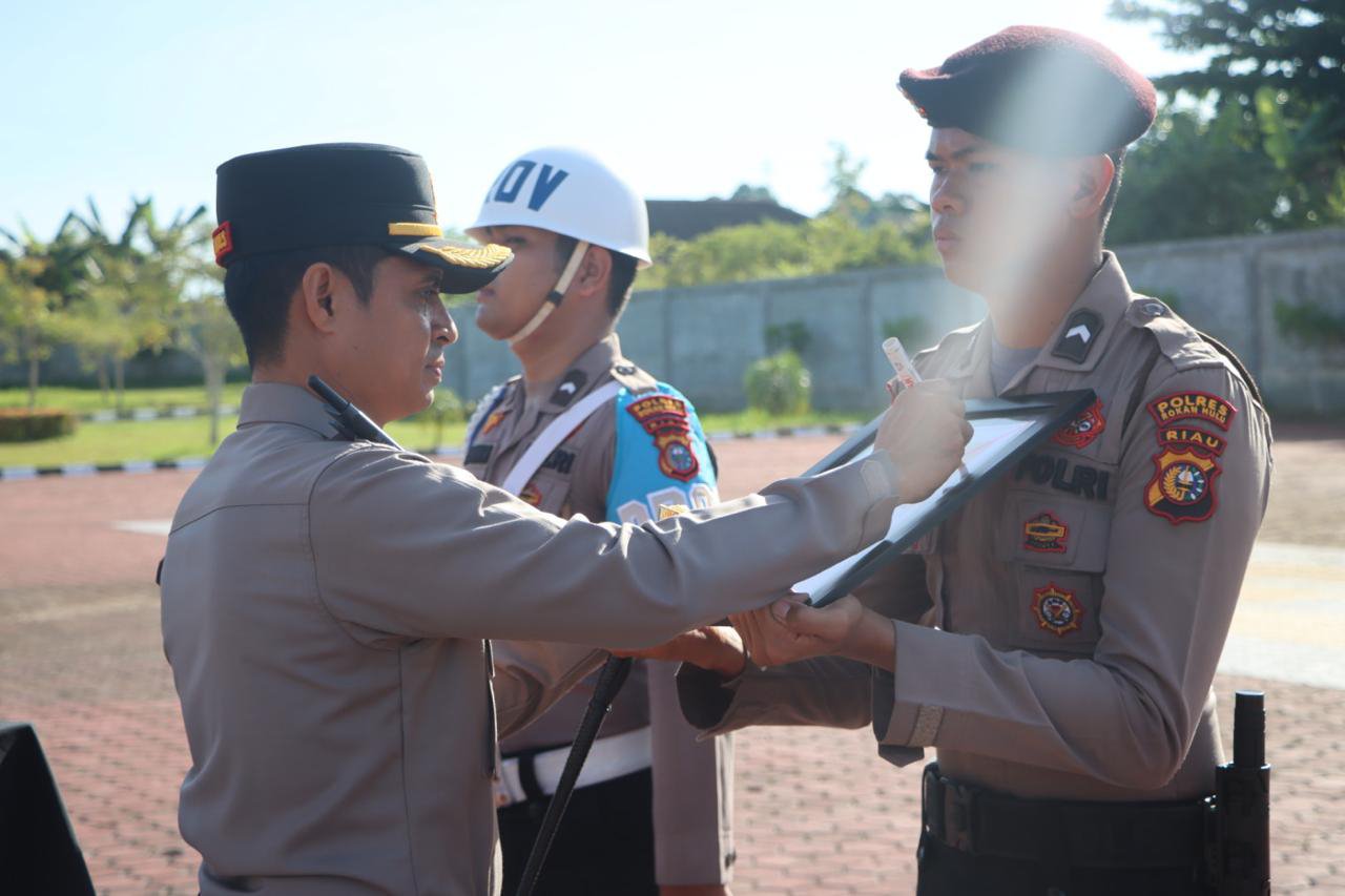 “Sebelum mengakhiri amanat ini saya mengingatkan kepada seluruh personel agar menjunjung tinggi profesionalisme kerja dalam pelaksanaan tugas, terutama terkait dalam upaya penegakan hukum, jangan terpengaruh terhadap hal-hal negatif apalagi sampai menyalahgunakan wewenang yang kita miliki untuk kepentingan pribadi, berikan kemudahan , sikap responsif dan penuh empati dalam melaksanakan tugas dalam memberikan perlindungan dan pelayanan kepada masyarakat serta mengikuti aturan-aturan yang ada” Tegas Kapolres Rohul AKBP Emil Eka Putra, S.I.K, M.Si.
