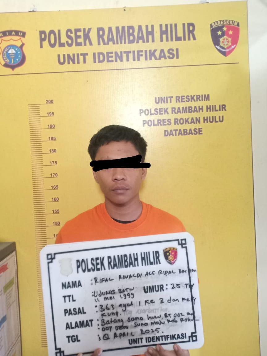 Tim langsung bergerak cepat ke lokasi dan berhasil mengamankan seorang pria bernama RR Alias RB (26), warga Desa Suka Maju, Kecamatan Rambah. Sementara satu pelaku lainnya melarikan diri saat hendak ditangkap.