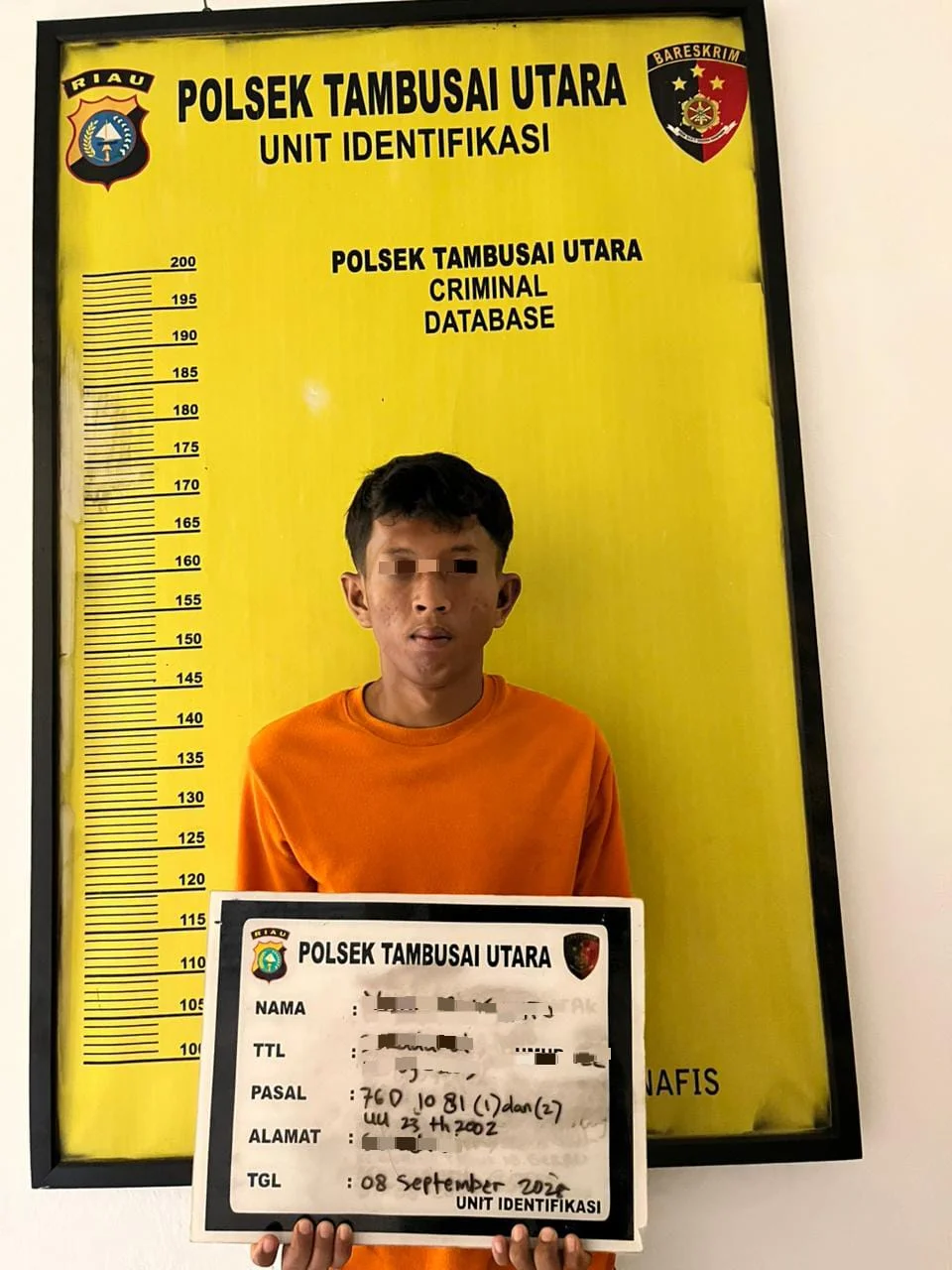 Rokan Hulu-Seorang pria berinisial YS (22) ditangkap Unit Rsskrim Polsek Tambusai Utara Resort Rokan Hulu atas dugaan melakukan persetubuhan terhadap seorang anak dibawah umur berinisial DFA (16) yang dilakukan sejak tahun 2022 lalu di Desa Suka Damai Kecamatan Tambusai Utara Rokan Hulu dan merekamnya dalam sebuah Video, lalu Video tersebut disebarkan kepada keponakan Korban